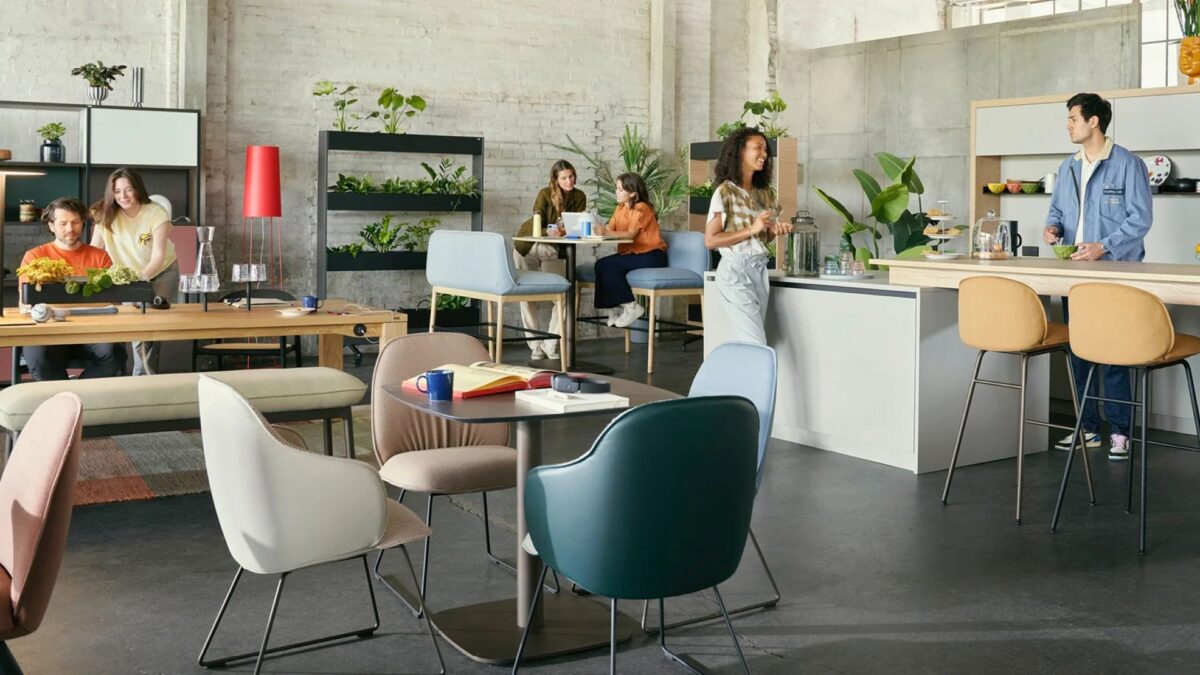 Változatos ülőhelyek: kombináljunk lounge-foteleket, modern irodai székeket és bármagasságú székeket.