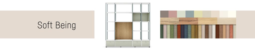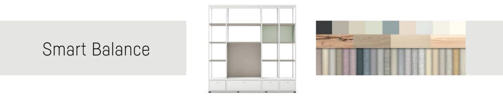 Akár klasszikus tárolóhely, integrált térelválasztó vagy kreatív munkaterület része a se:matrix a helyszínre szabható, mely nem csak a modulok megválasztását és elrendezését foglalja magában, hanem a megfelelő színválasztást. A melamim felületek színeit igazíthatjuk a környezethez, vagy éppen új hangulatot teremthetünk a színek használatával. Négy előre szelektált színösszeállításunkkal nem lehet mellé nyúlni, csak válasszon!