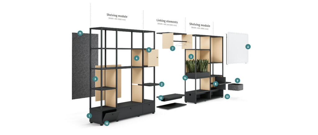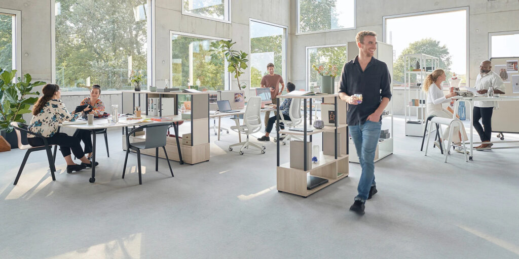 Asztalok és konténerek egymás mellé sorolva – ez volt a régi idők iroda. Ma viszont nyitott, változó funkciójú, nem dedikált munkahelyek jellemzik az irodákat. Ebben a kontextusban a gazdaságos helykihasználás és a változó igények kielégítése kulcsfontosságú.