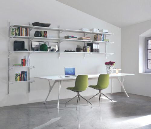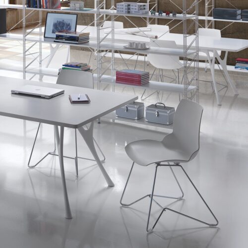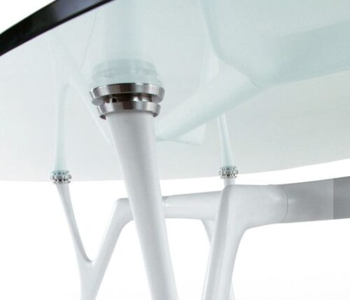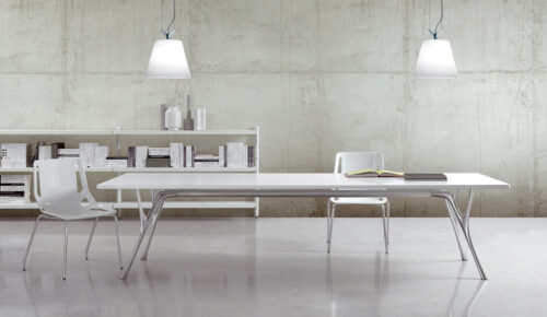 A Caimi Pegaso munkaasztal organikusan íves lábai a szecessziós stílusjegyeire emlékeztetnek. A valóban művészi asztal lábszerkezete csiszolt vagy porszórt fém. A szerkezet négy öntött alumínium monoblokkból és az összekötő szelvényből áll össze. Az asztallap lehet négyszögletű vagy ellipszis alakú, átlátszó, matt homokfúvott üveg.