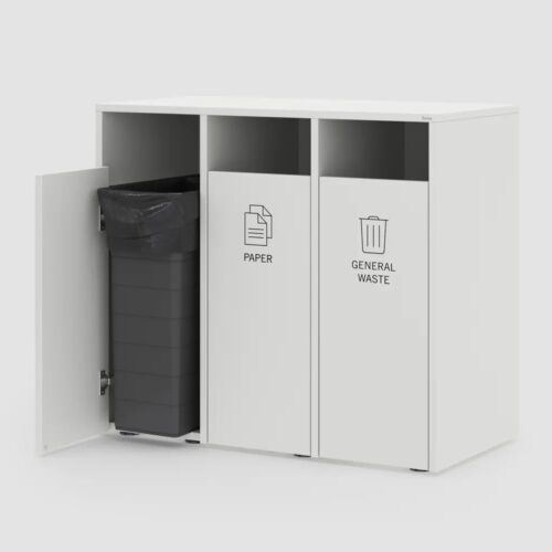 A Neudoerfler CleanUp szelektív szemetes esztétikus megoldás a hatékony szelektív hulladékgyűjtéshez. A modern irodák szinte kötelező eleme, mely elősegíti a fenntartható életmódot. A termék elemei nincsenek összeragasztva, így darabokra szerelve újrahasznosítható minden eleme. A szemetes 80% újrahasznosított műanyagból készül. Kérhető ikonokkal és felirattal ellátva is.