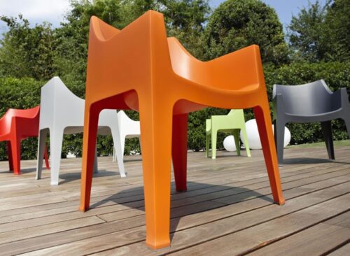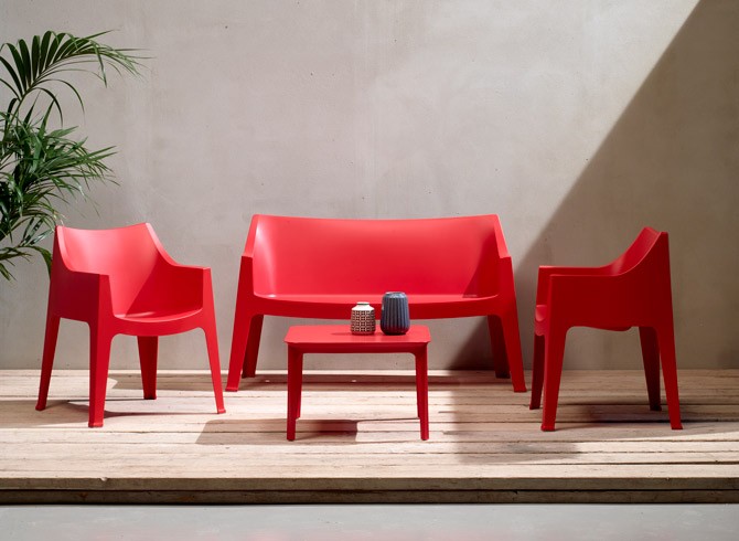 A Scab Design Coccolona kültéri műanyag fotel és kanapé lehengerlő stílusával uralja a teret. Stabil és ellenálló darab, mely sokféle színben elérhető bel-vagy kültérre egyaránt. Az innovatív olasz dizájn terméke.