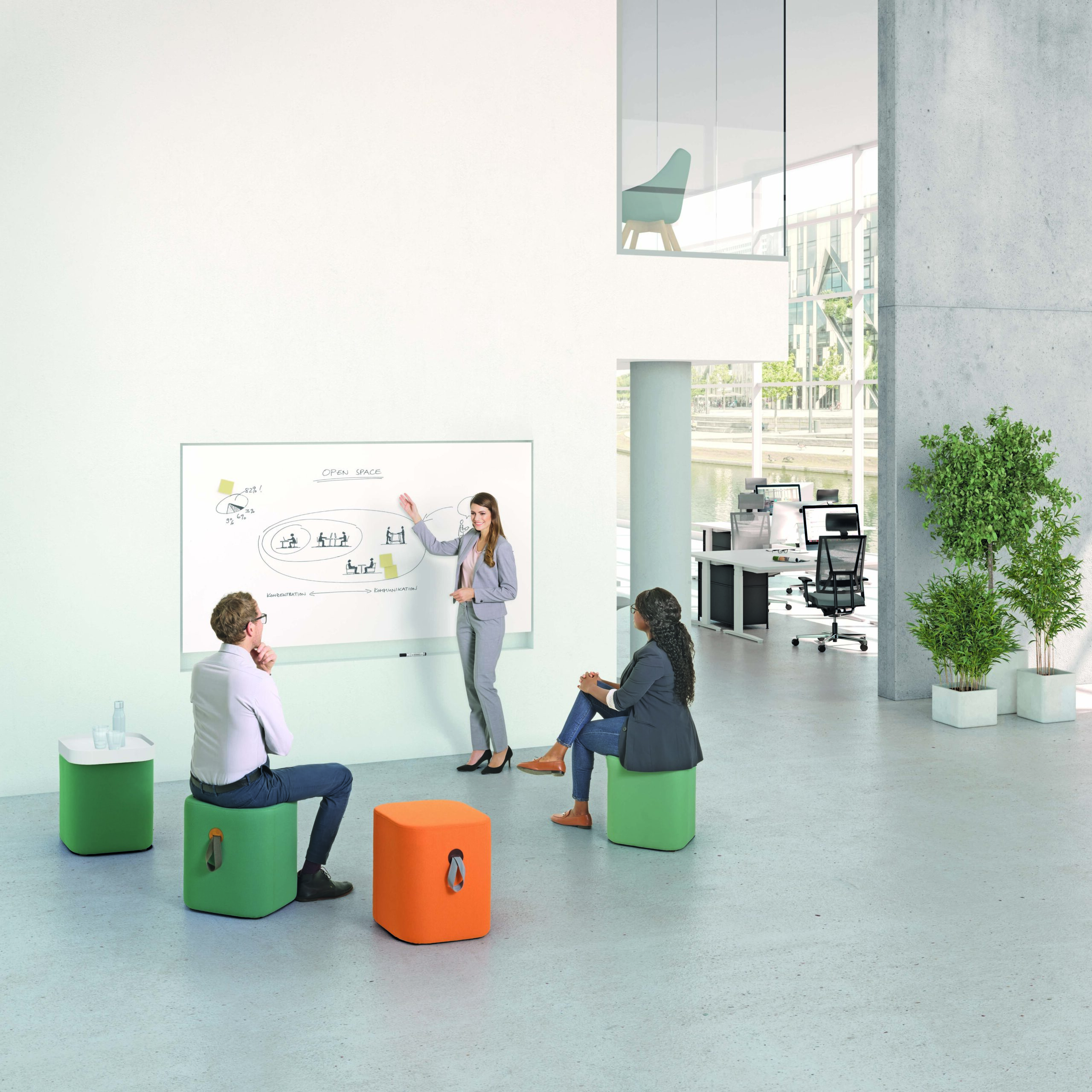 A Viasit Coloq puff egy könnyű és rugalmasan alkalmazkodó ülőbútor, mely fogantyújánál fogva különösen mobil is. A Coloq ideális ülőhely a kommunikáció, pihenés vagy a közös munkavégzés spontán pillanatai számára. A Viasit teljes szövetválasztékával kárpitozható. 3 méretből lehet választani, illetve kérhető hozzá különálló tálca, mellyel a legkisebb méretű puff szempillantás alatt asztallá alakítható.