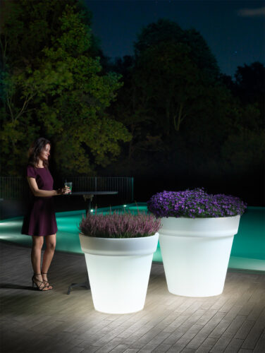 A tiszta vonalvezetés és az egyértelmű formák mindig is jellemezték a Lyxo kollekciót, most azonban ezek az elvek nagy méretben, kültéri, utcai környezetben is megjelenhetnek. A Lyxo Easy virágtartó hatalmas és kifinomult kontúrral rendelkező dizájn tárgy, melyet a fény tesz teljessé.