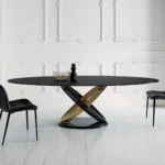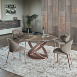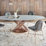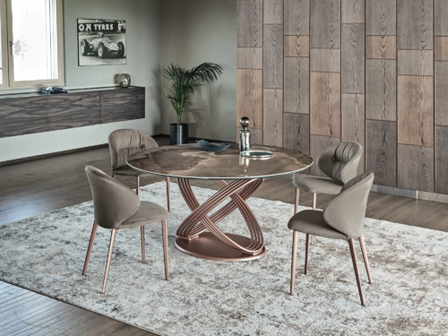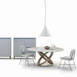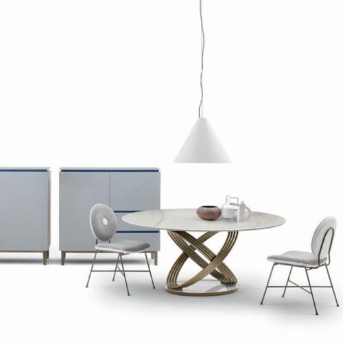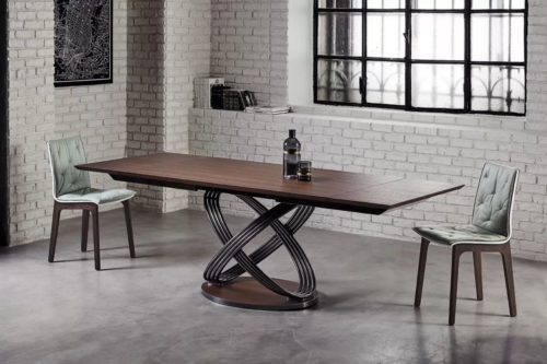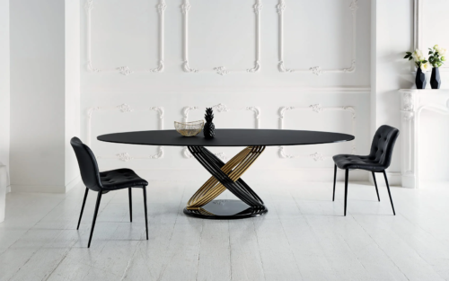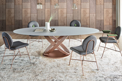 A Bontempi Fusion asztalok egymásba forduló gyűrűkből álló lába egyszerre dinamikus és egyben az örökkévalóságot anyagba foglaló hamisítatlan olasz dizájn vívmány. Kihúzható verzióban is elérhető. Számos luxus asztallap közül választhatunk.