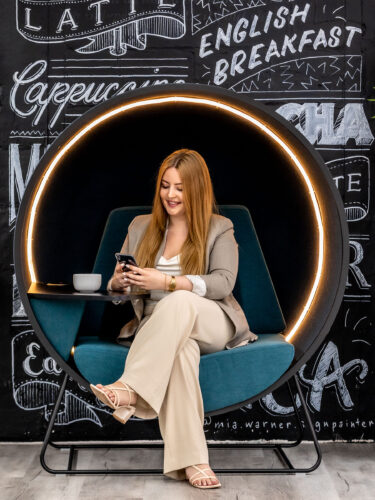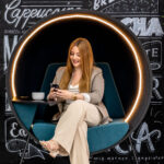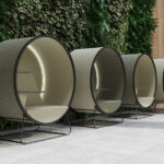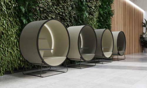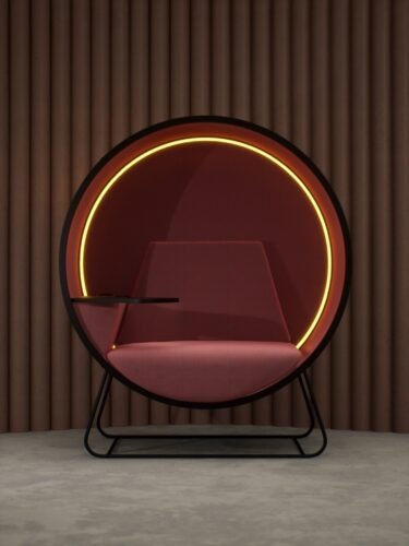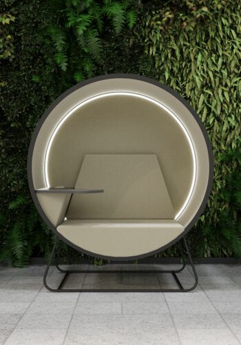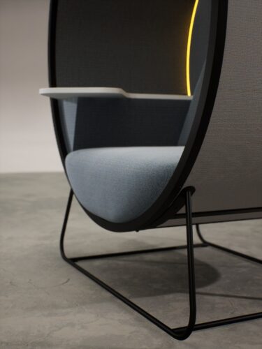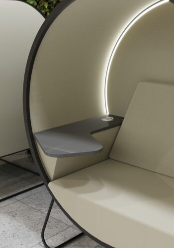 A Connection Kuppel kanapé nevének jelentése norvégül boltozat. A Kuppel egy személyes munkahely, mely megengedi, hogy kiszakadjunk az egyterű irodák forgatagából. A puha, kerek forma nyugalmas hely a visszavonulásra. Békét és ellazulást biztosít mind fizikai mind érzelmi szempontból. A Kuppel íves teteje akusztikus és vizuális határt is formál, így megszabadulunk a zavaró tényezőktől a kényelmes 1,2 méteres ülőhelyen. Asztallal, elektromos csatlakozóval is felszerelt, hogy hosszan is befészkelhessük magunkat.