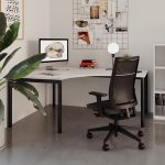 A munkafelületek gazdag szín és anyag választéka (laminált dekor vagy furnérozott, kompaktlapos, és színezett üveg – mérettõl függõen) minden igényt kielégítenek. A lábak fekete, fehér és ezüst színben készülnek.