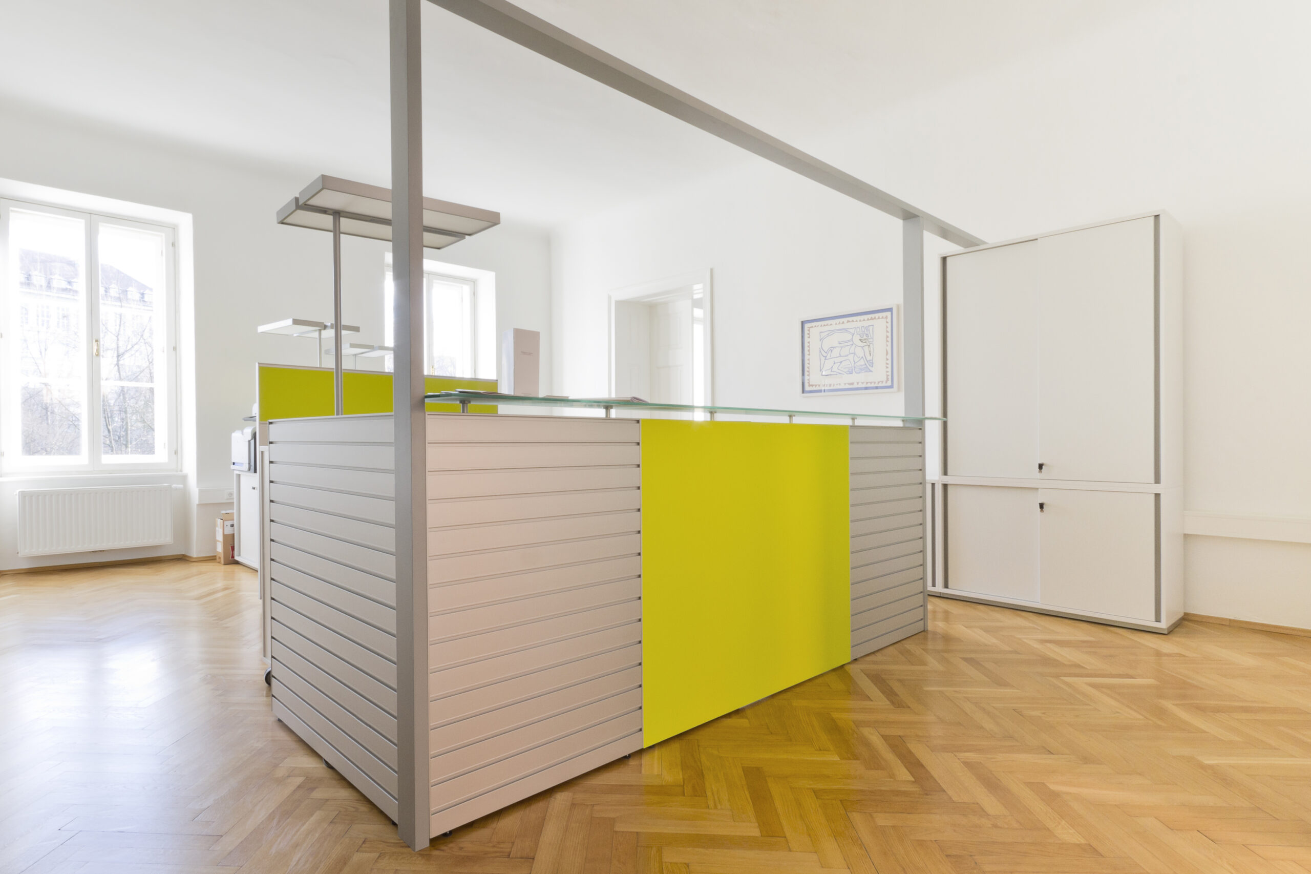A Neudoerfler Motion recepciós (vagy titkársági) pultok alumínium és bútorlap kivitelben készülnek. A két anyagfajtát kombinálni is lehet, a könyöklő részre pedig bútorlapot és edzett biztonsági üveget is kérhetünk. A pultok a Motion asztalok méreteihez igazodnak, összeépítésük a Motion adapterekkel lehetséges. Számos elrendezési forma kiépíthető belőlük költséghatékonyan.