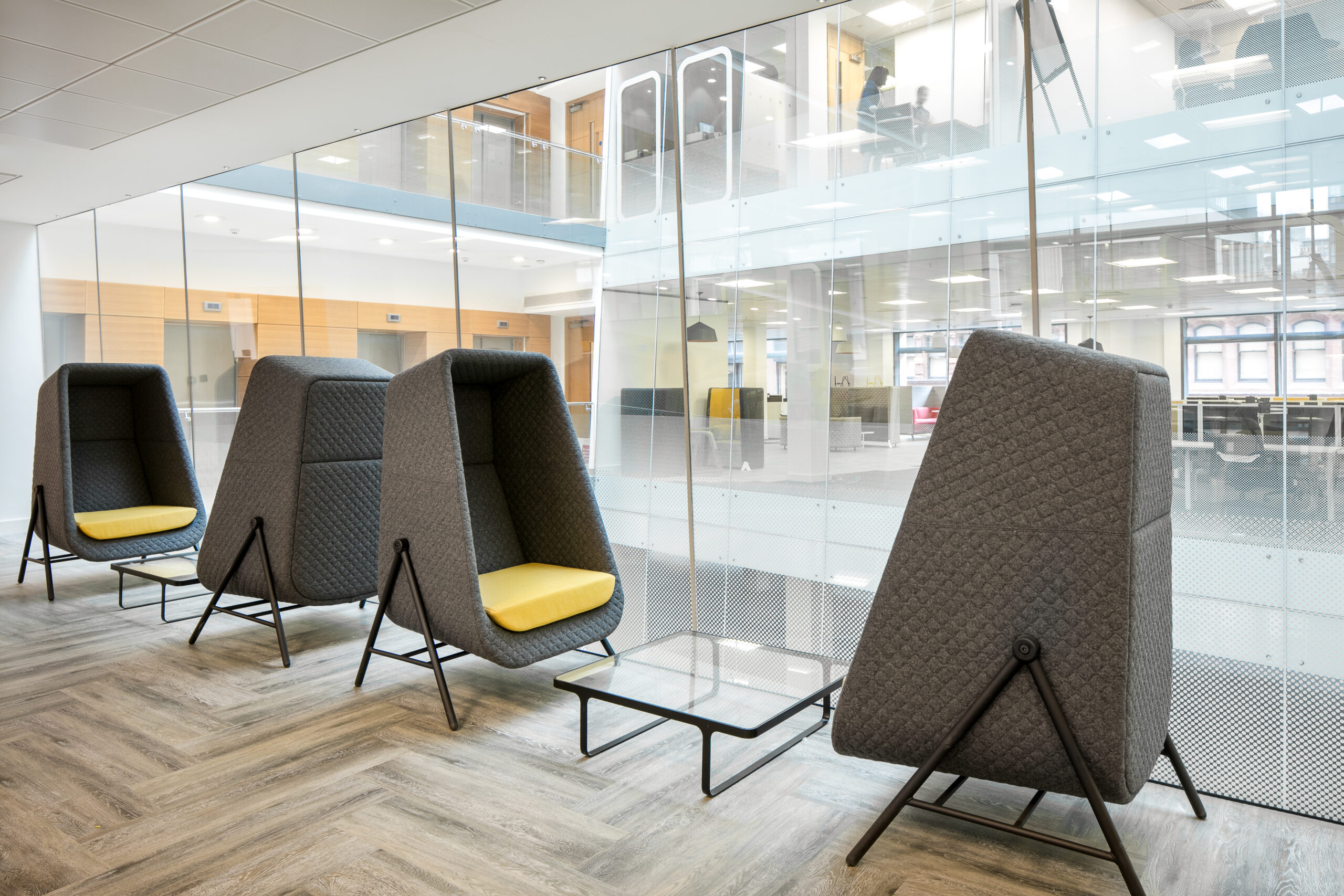 A Connection Muse fotel a normál fotelek és akusztikai fülkék lenyűgöző ötvözete. Használója nyugodt menedékre talál az egyterű irodák zavara elől. A zárt magas háttámla lezárt teret hoz létre, mely elzárja a perifériás horizontot és csökkenti a külső zajokat. Tökéletes menedék nyilvános terekben, beleértve az egyterű irodákat, várókat, reptéri lounge tereket és hotel lobbykat. Fa és fém lábszerkezettel is elérhető.