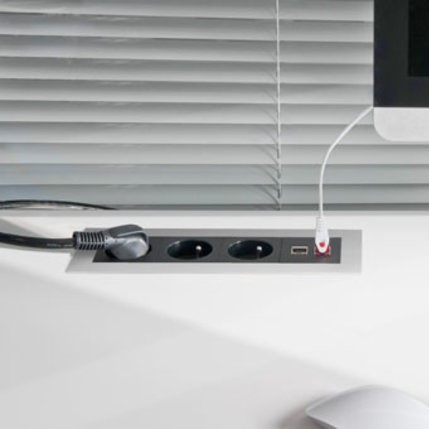 Az A&H Meyer Netbox Style az asztallapba bepattinthatóan rögzíthető. Ezüst, fekete vagy fehér színben kapható. Adat- és multimédia kábelek csatlakoztatására vagy elektromos hálózati csatlakozásra is alkalmas. Ideális rakásolható asztalok számára.