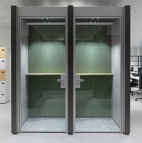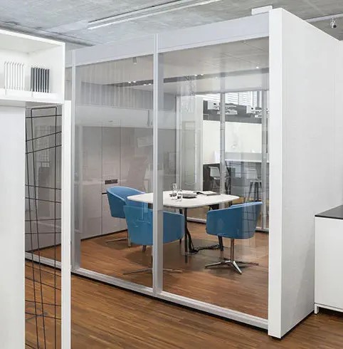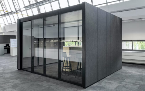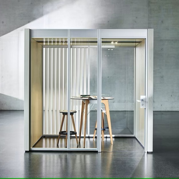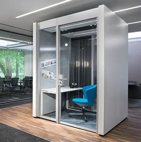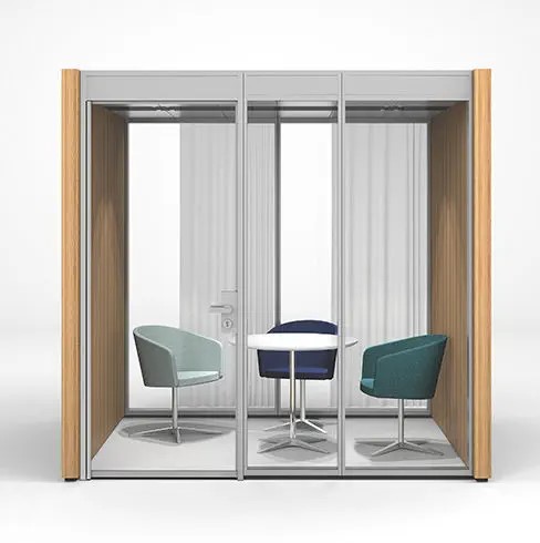 A Neudoerfler NOOXS épített tárgyaló rendszer pihenésre és tárgyalásra egyaránt helyet biztosít. Végül is minden irodai találkozáshoz csöndre és odafigyelésre van szükség. Az akár 2,65 m magas szabadon álló room-in-room rendszert bárhol fel lehet építeni. Sokoldalú és rugalmasan használható, hiszen moduláris fal és ajtóelemeit szabadon kombinálva tudjuk az adott helyre legjobban illő konfigurációt összeállítani. Könnyű őket összeállítani, és nem kell az épület meglévő szerkezetein bármit is módosítani. Teljesen autonóm beépített fény és szellőzőrendszerrel felszereltek. Természetesen rengeteg fantasztikus színből szemezgethetünk! Nézze meg a NOOXS akusztikus fülkét is!