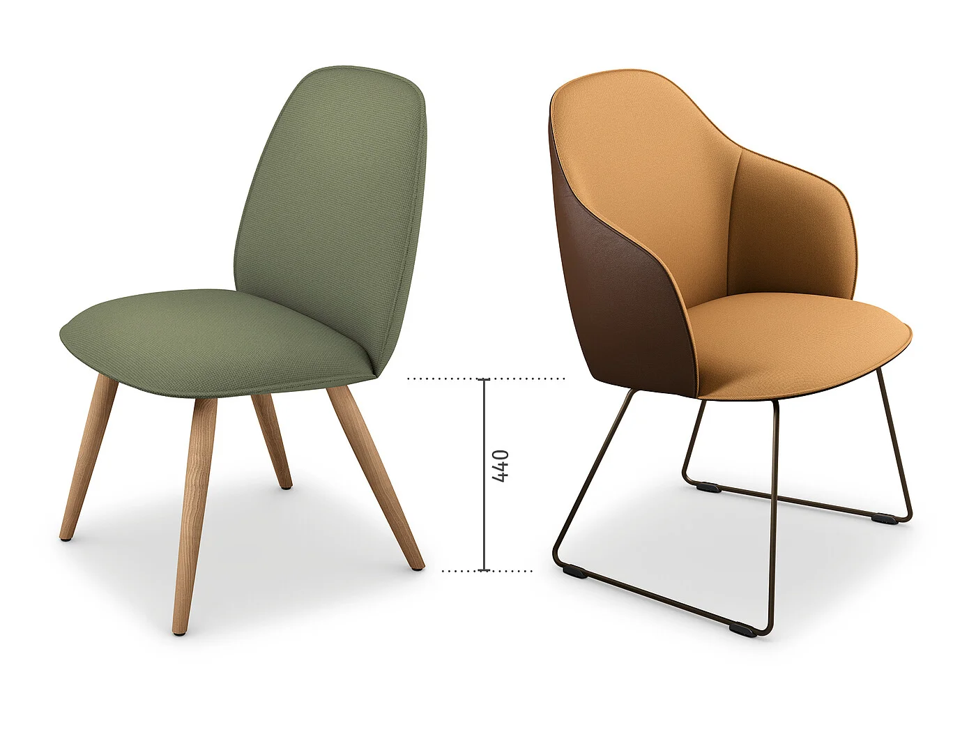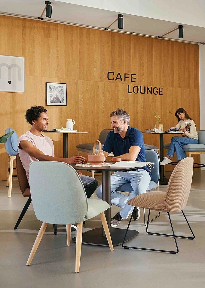 A se:café soft szék a Sedus modern munkaterekhez és közösségi helyiségekhez tervezett, letisztult megjelenésű, teljesen kárpitozott ülőbútora. Az enyhén hátradöntött háttámla és az optimális ülésmagasság kényelmes testtartást biztosít, legyen szó étkezőasztal melletti beszélgetésről vagy tárgyalótermi megbeszélésről. Az ülőrész és a háttámla egyaránt különféle szövetekkel és bőrökkel testre szabható, így a szék könnyedén illeszkedik a különböző enteriőrök karakteréhez. A szék háromféle vázzal – fa, acél vagy szánkótalpas kialakítással – rendelhető, karfás vagy karfa nélküli változatban. Az esztétikus varrások és választható casual vagy formális kárpitozási stílus otthonosságot és egyedi megjelenést biztosítanak. A se:café soft szék így ideális választás étkezőkbe, kollaborációs terekbe vagy vállalati kávézókba, ahol a kényelem és a stílus egyaránt fontos szempont.