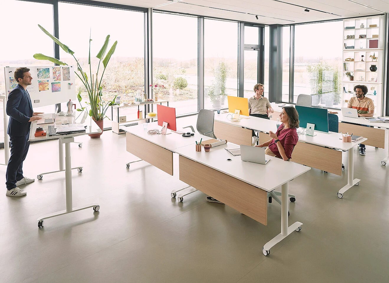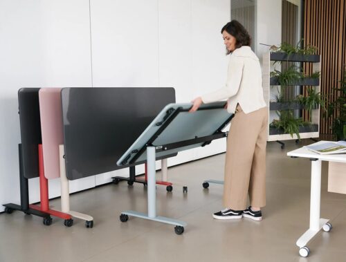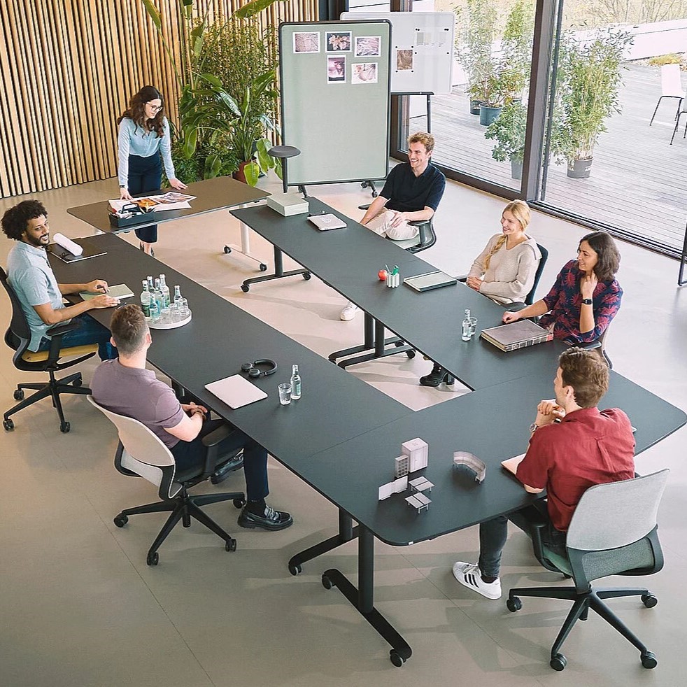 Akár tanfolyamról, workshopról vagy előadásról van szó a mobil és rakásolható se:lab flip összecsukható asztalok segítségével bármilyen elrendezés könnyen létrehozható. Görgői által minden megerőltetés nélkül át lehet helyezni. Amikor használaton kívül van, akkor pedig az asztallap néhány mozdulattal felhajtható és kis helyet foglalva félre tehető. Számos asztallap méret és szín, illetve egyénre szabható opció segít, hogy tökéletesen illeszkedjen a térbe.