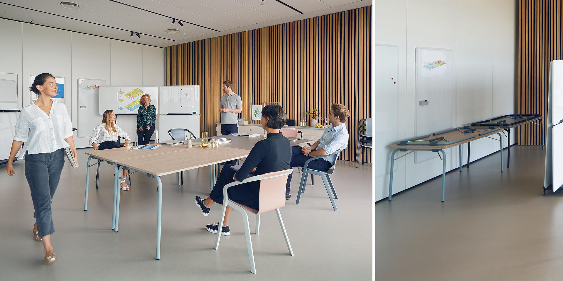 A sedus se:lab fold összecsukható asztal időtlen megjelenésű, helytakarékos és sokoldalú darab. Számos irodai környezetben és szerepben kiváló. Lehetővé teszi a terek gyors berendezését vagy átalakítását. Csukó mechanizmusának és könnyű asztallapjának köszönhetően könnyen kezelhető és kis helyet foglal. A rakásolható állvány segítségével 12 asztal tárolható és mozgatható egyben.