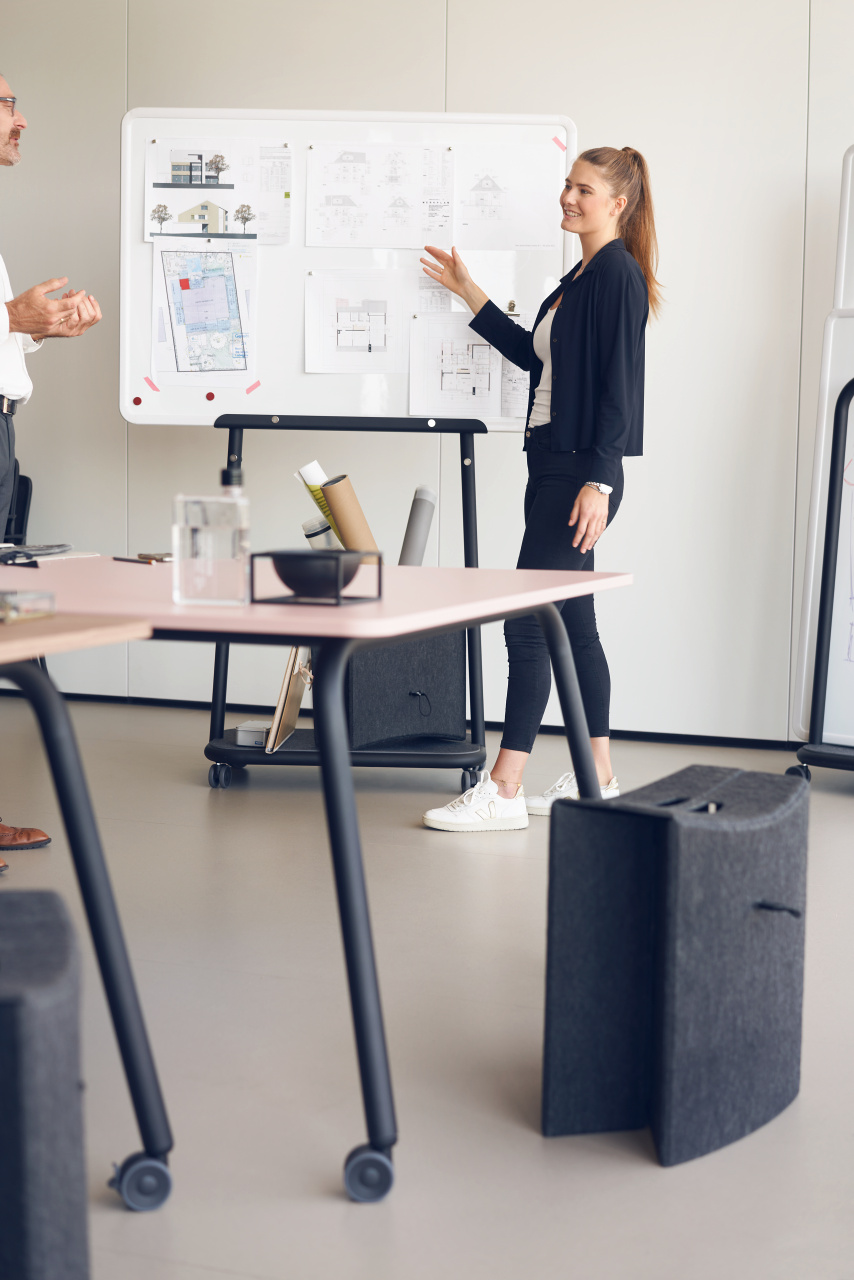 A sedus se:lab rack táblaállvány workshopok és agilis megbeszélések elengedhetetlen eleme. A ráhelyezett se:lab táblák által széles teret biztosít a kreativitás és az agilis munkavégzés számára. Görgőinek köszönhetően könnyen mozgatható . Összesen 4 se:lab tábla fér el rajta.