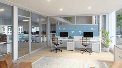 A Neudoerfler System válaszfal rendszer nyitottság és megfelelő takarás keveréke. Duplafalú szerkezetének köszönhetően kiváló akusztikai tulajdonságokkal bír teljesen zavarás és megszakításmentes beszélgetések számára. Átlátszó üveg és dekoratív kárpitozott panelek váltakozása által épp ott takar és ott enged betekintést, ahol kell. Széles anyagválaszték és a lehetséges elrendezések sokasága lehetővé teszi az igazán egyedi konfiguráció kialakítását. Sőt, tárolóegységek is építhetők bele.