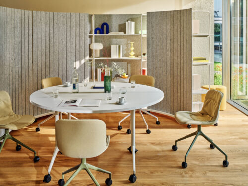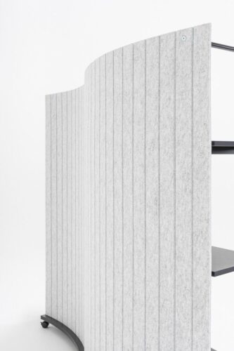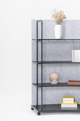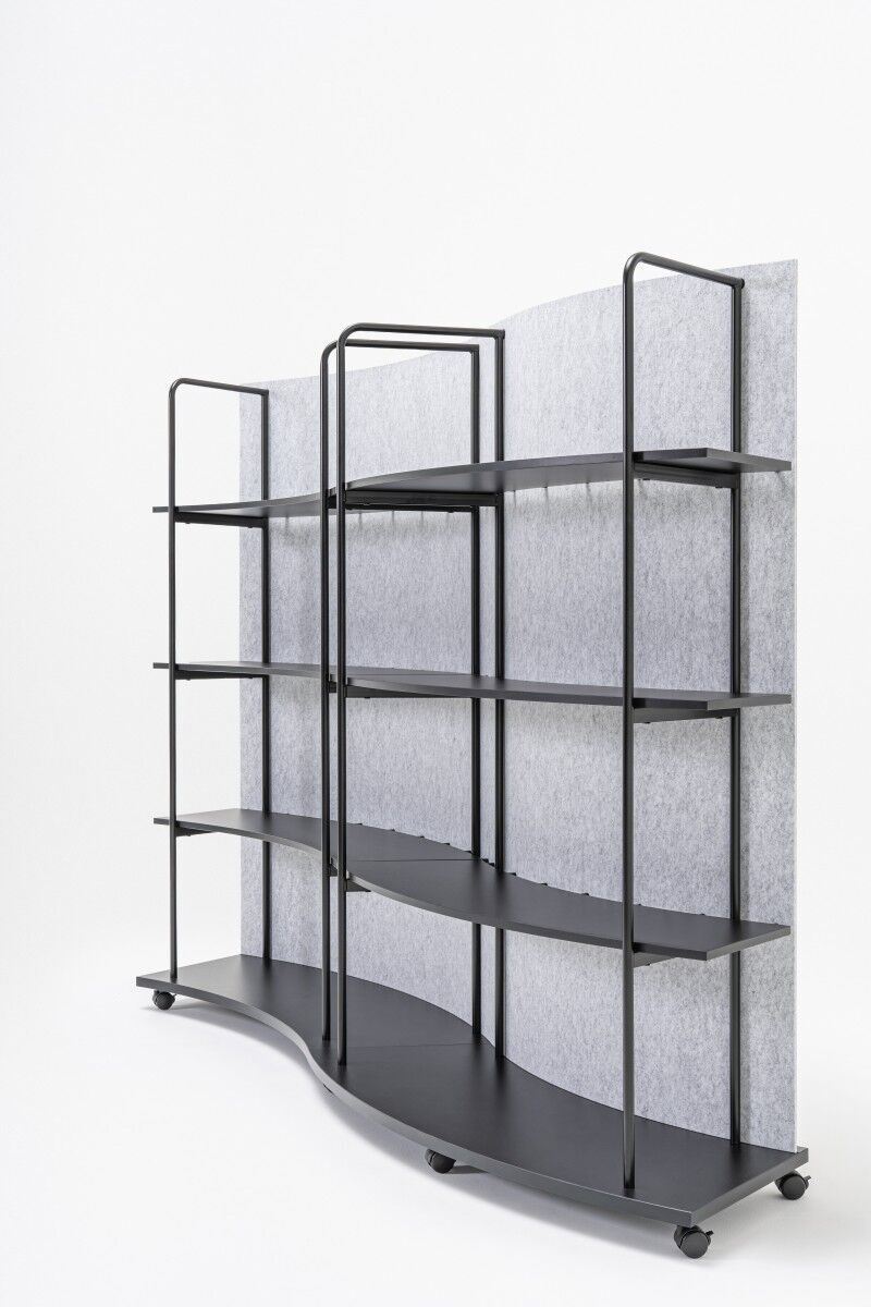 Az MDD Tanca polc önmagában vagy többedmagával rendszerbe helyezve egyaránt kiválóan működik. A görgőkkel felszerelt könnyű szerkezet könnyen mozgatható. A hátoldala PET filc panellel fedett, ami akusztikus és vizuális határt is képez. Mindezek által könnyedén átrendezhető, így gyorsan tudunk vele új ideiglenes, organikusan kialakított tereket létre hozni.