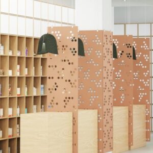 A Cascando Trunk akusztikus mobil térelválasztó asztali és álló verzióban is elérhető multifunkcionális bútordarab.