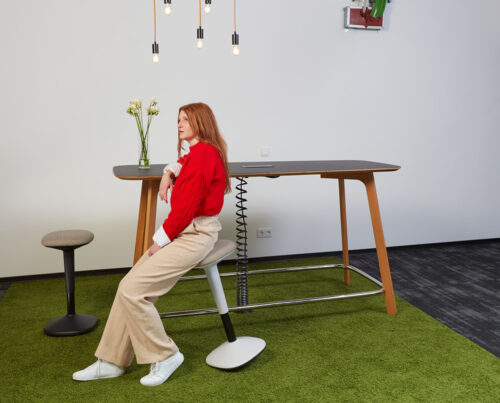 A Viasit Younit állássegítő mindig készen áll, amikor rugalmasságra van szükség. Egy filigrán álló ülés fekete vagy szürke lábbal csúszásmentes gumi talpon. Gázrugóval állítható magasságú. A magasságot az ülésbe épített gombokkal lehet beállítani. Az ülés műanyaghab borítású. Mindössze 5,6 kg és a rejtett fogantyúknak köszönhetően könnyen szállítható. A dinamikus ülés a gondolatokat is fitten tartja!